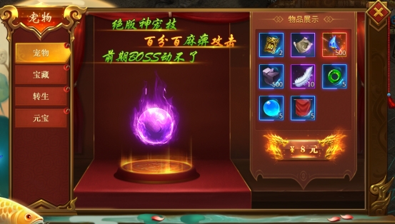 活动内容:玩家可以花费少量钻石购买超值礼包,可以快速提升装备、宠物、翅膀